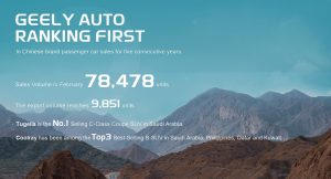 Объем экспорта Группы вырос примерно на 34,5% в годовом исчислении до 9 851 единицы в феврале 2022 года, в том числе объем продаж на рынке Ближнего Востока увеличился на 118% по сравнению с соответствующим периодом прошлого года. Что касается моделей, Tugella сохранила свои позиции самой продаваемой модели в сегменте C в Саудовской Аравии. Еще одна звездная модель Coolray уже долгое время входит в TOP 3 по объему продаж в своем сегменте на рынках Филиппин, Саудовской Аравии, Катара и Кувейта соответственно. В феврале в Каире, Египет, был открыт крупнейший автосалон Geely в Африке, и в тот же период на Филиппинах был запущен All-New Emgrand (четвертое поколение Emgrand), нацеленный на самый крупный сегмент рынка, рынок субкомпактных седанов.