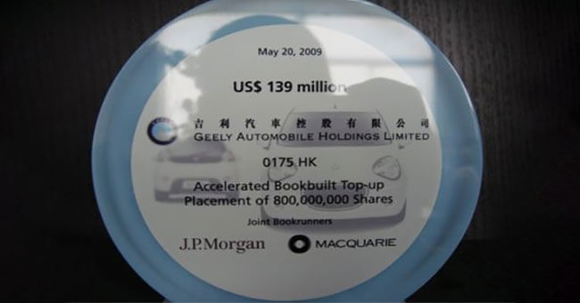 Geely Auto зарегистрирована на Гонконгской фондовой бирже Geely Auto стала первым китайским автопроизводителем, зарегистрированным на Гонконгской фондовой бирже.